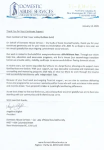 This is our new charity for the 2025/2027 that we’ll be supporting financially as well as with quilts (any size) and toiletries (unused only). At our meetings we will have a box at the back of the room for any canned/boxed food that you can or wish to donate to them. See Joan Anderson or Barb Christensen with your donations.